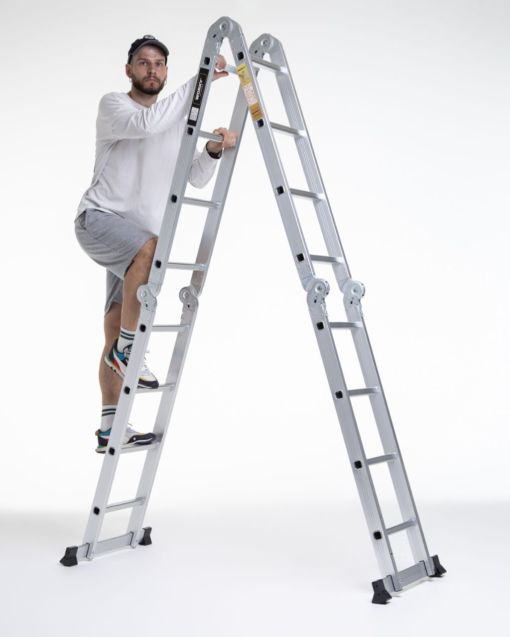 Алюминиевые стремянки выдерживают нагрузку до 150 кг благодаря поперечинам, прочному каркасу и металлической платформе — этого хватит для работы с инструментами при вашем весе. Стальные модели имеют разные показатели: Sarayli рассчитаны на 100 кг, а EUROGOLD — на 150 кг. Запас прочности позволяет безопасно работать с дополнительным весом инструментов.