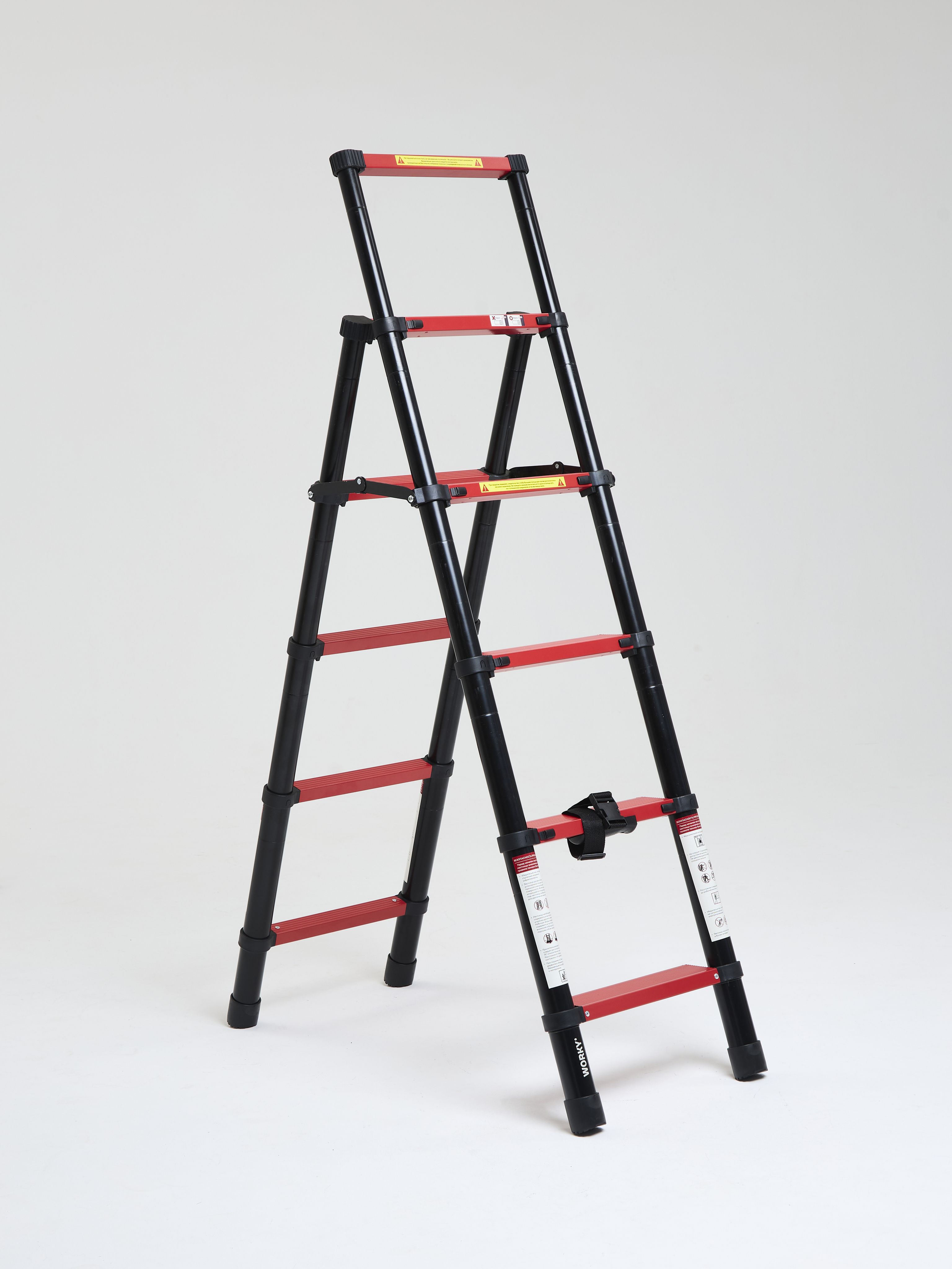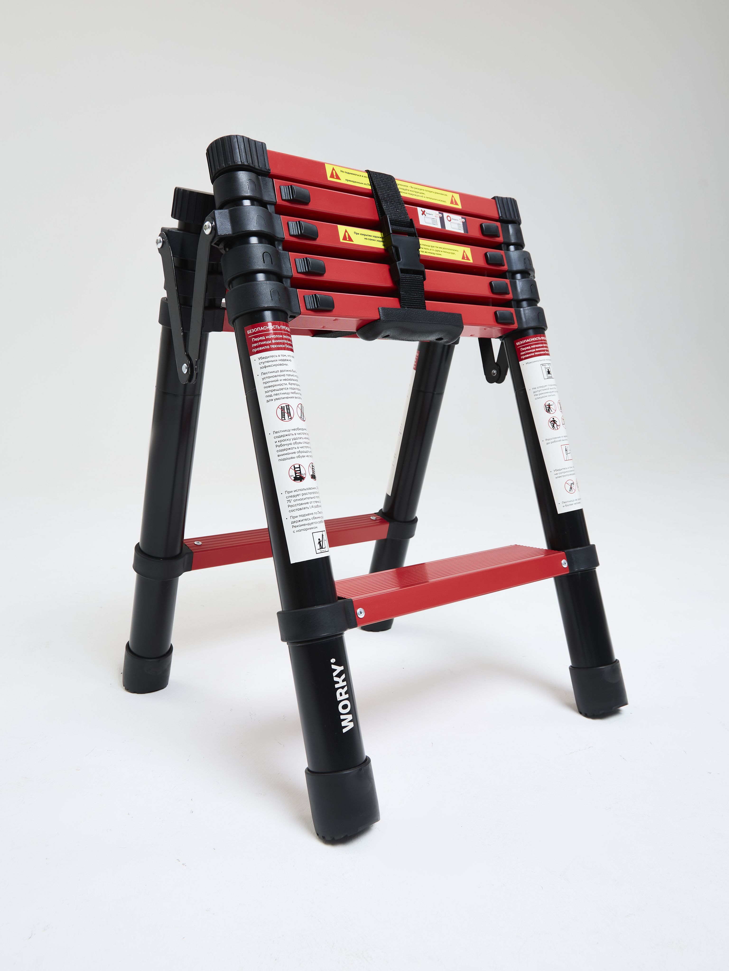 Алюминиевые стремянки выдерживают нагрузку до 150 кг благодаря поперечинам, прочному каркасу и металлической платформе — этого хватит для работы с инструментами при вашем весе. Стальные модели имеют разные показатели: Sarayli рассчитаны на 100 кг, а EUROGOLD — на 150 кг. Запас прочности позволяет безопасно работать с дополнительным весом инструментов.