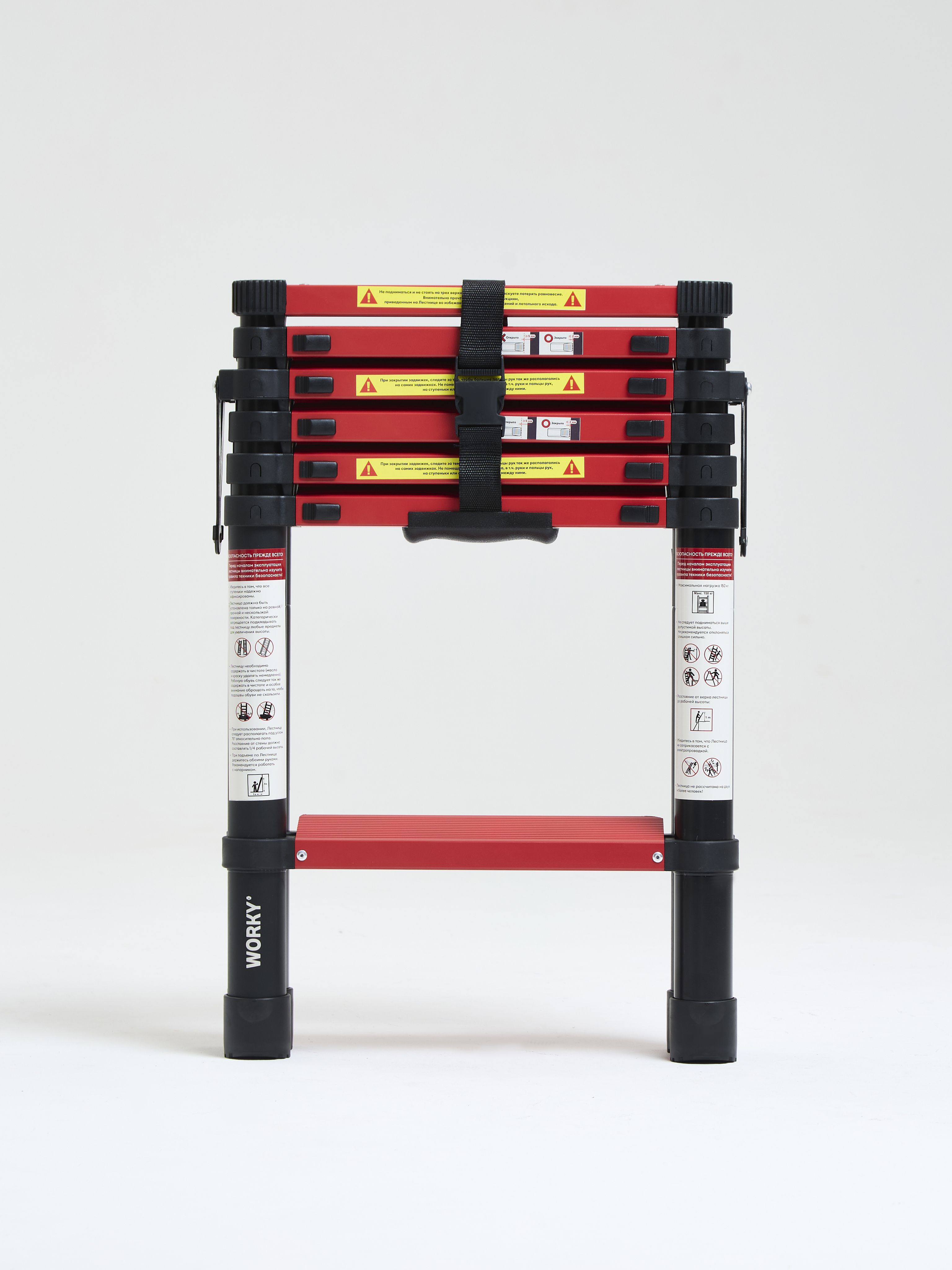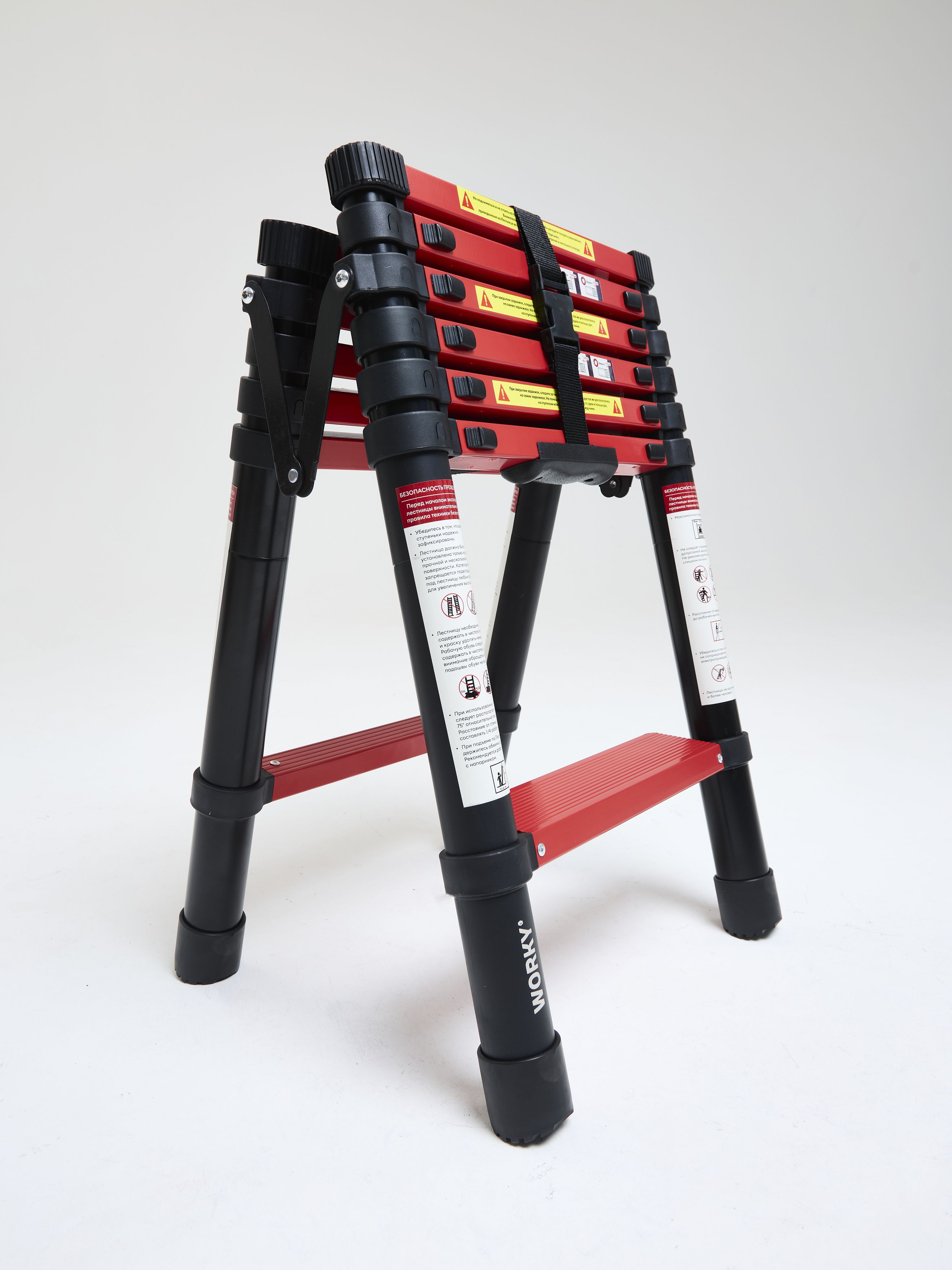 Алюминиевые стремянки выдерживают нагрузку до 150 кг благодаря поперечинам, прочному каркасу и металлической платформе — этого хватит для работы с инструментами при вашем весе. Стальные модели имеют разные показатели: Sarayli рассчитаны на 100 кг, а EUROGOLD — на 150 кг. Запас прочности позволяет безопасно работать с дополнительным весом инструментов.