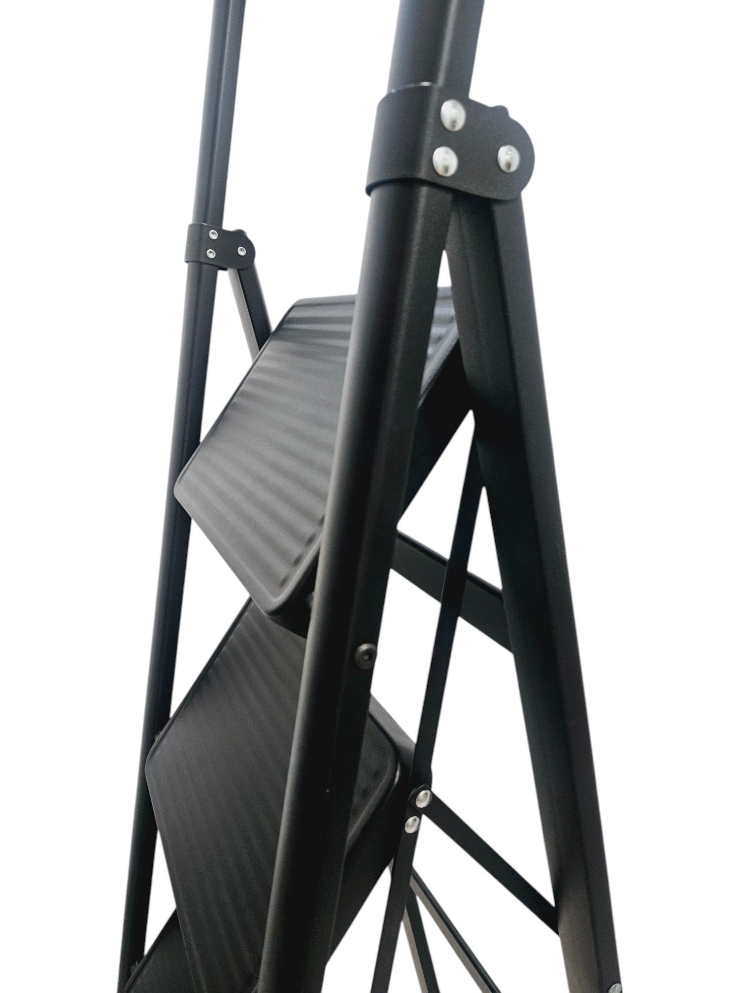 Алюминиевые стремянки выдерживают нагрузку до 150 кг благодаря поперечинам, прочному каркасу и металлической платформе — этого хватит для работы с инструментами при вашем весе. Стальные модели имеют разные показатели: Sarayli рассчитаны на 100 кг, а EUROGOLD — на 150 кг. Запас прочности позволяет безопасно работать с дополнительным весом инструментов.