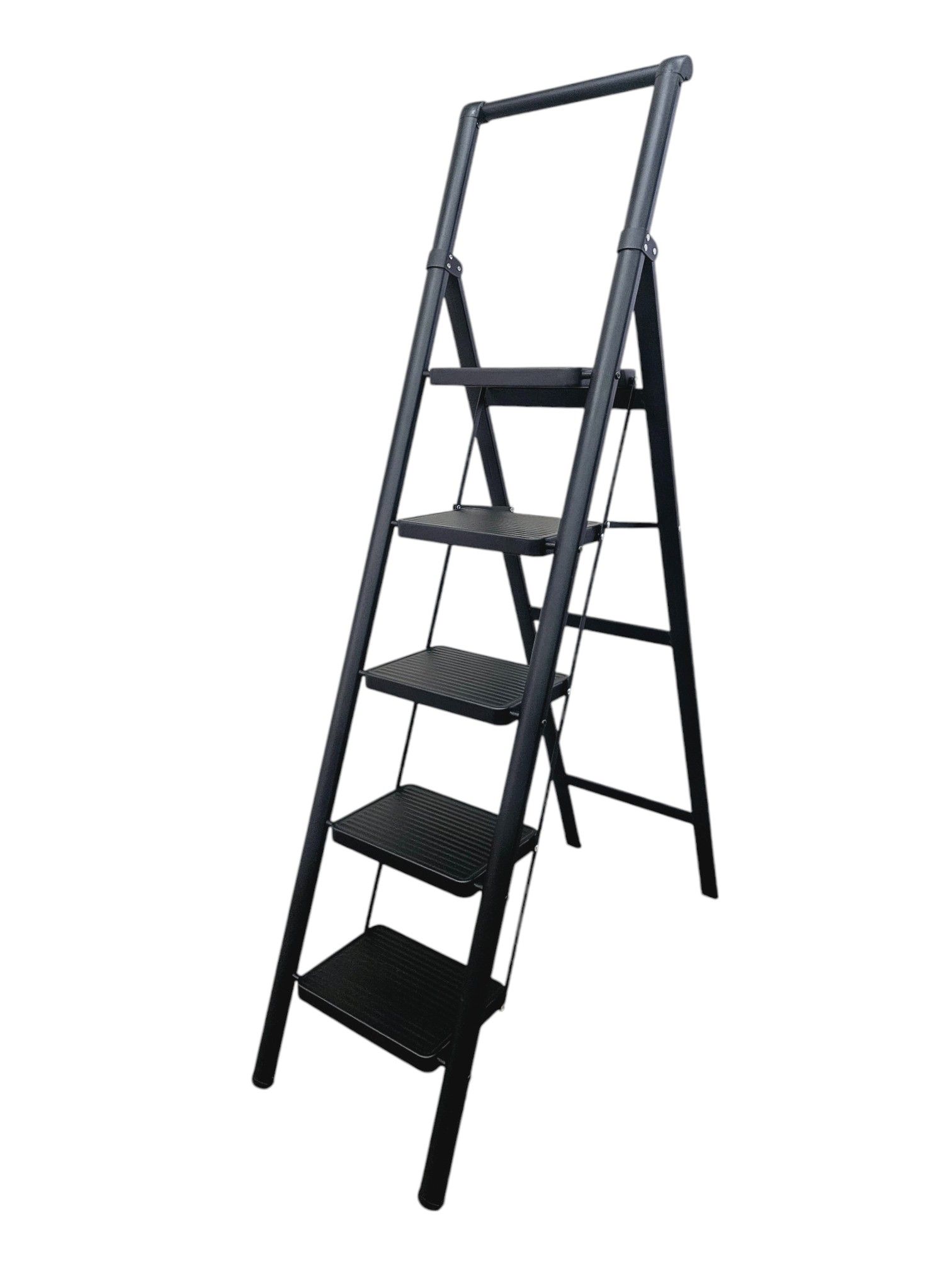 Алюминиевые стремянки выдерживают нагрузку до 150 кг благодаря поперечинам, прочному каркасу и металлической платформе — этого хватит для работы с инструментами при вашем весе. Стальные модели имеют разные показатели: Sarayli рассчитаны на 100 кг, а EUROGOLD — на 150 кг. Запас прочности позволяет безопасно работать с дополнительным весом инструментов.