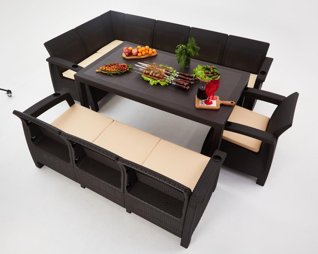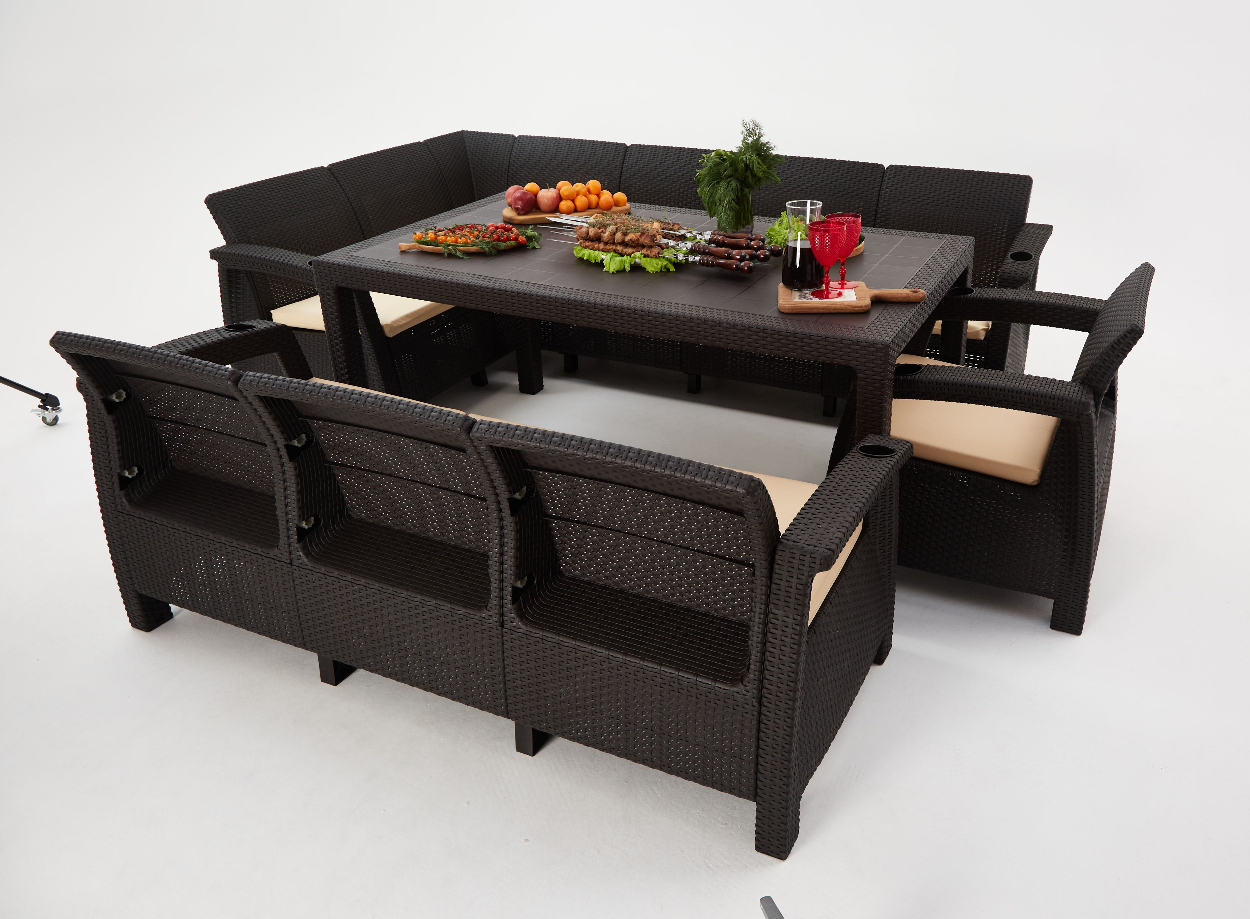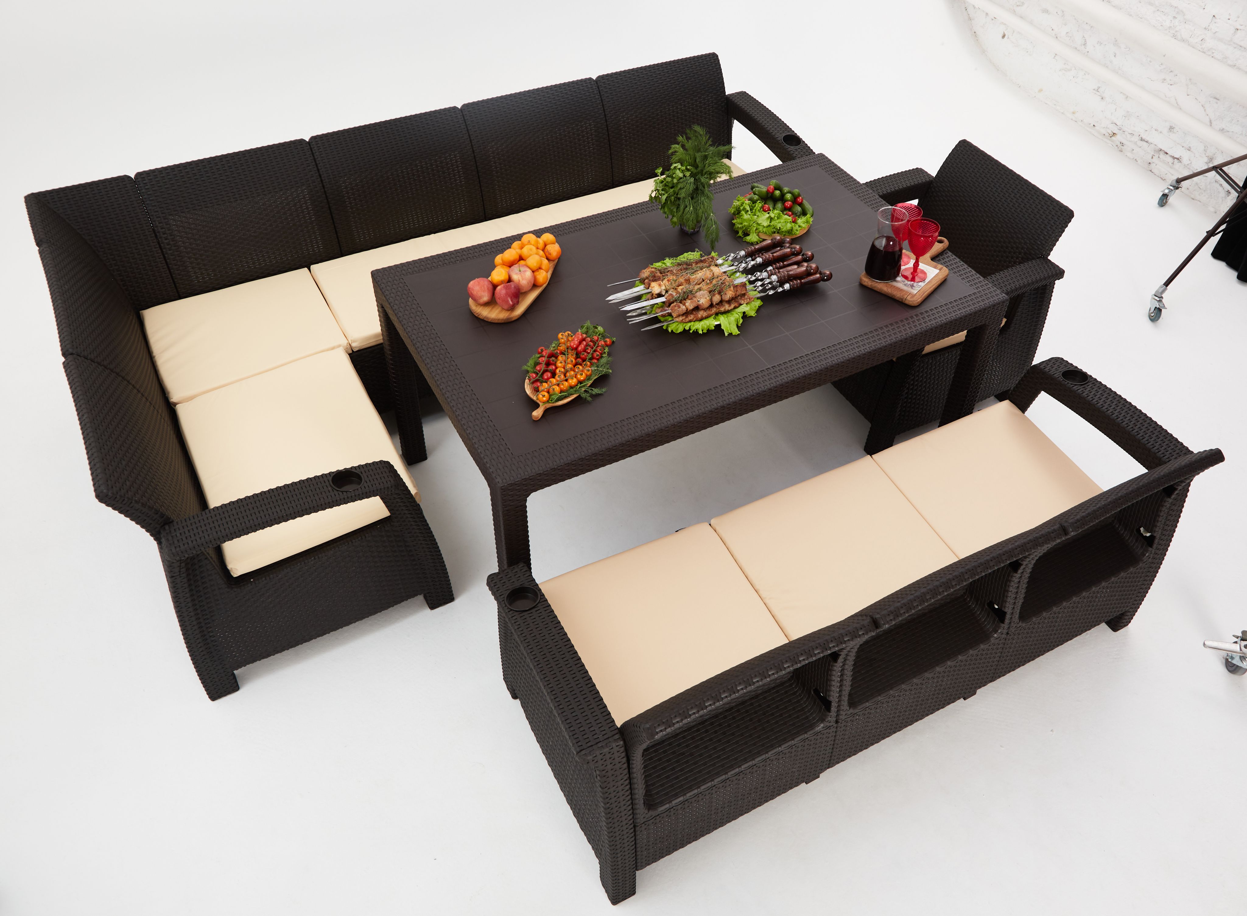 Диван угловой - 1 шт.; Диван 3х местный - 1 шт; Большой обеденный стол - 1 шт.; Кресло - 1 шт. |