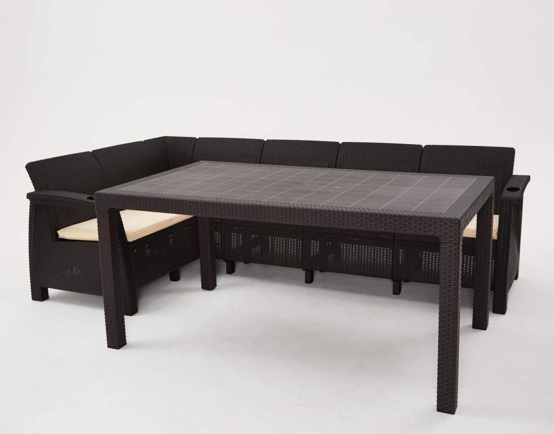 Диван садовый угловой - 1 шт., стол обеденный - 1шт; комплект подушек для углового дивана - 1 шт.; инструкция по сборке. |