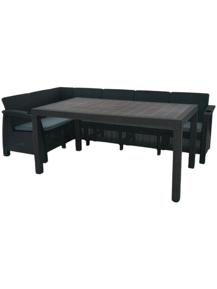 Диван садовый угловой - 1 шт., стол обеденный - 1шт; комплект подушек для углового дивана - 1 шт.; инструкция по сборке. |